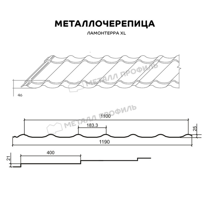 Металлочерепица Металл-Профиль Ламонтерра XL 0,4 Полиэстер RAL 6005 Зеленый мох