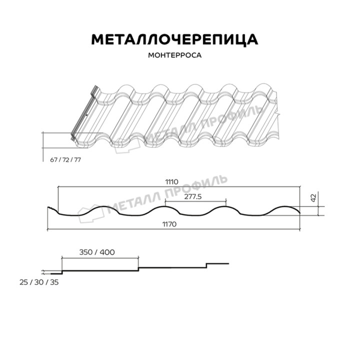 Металлочерепица Металл-Профиль Монтеррей 0,45 Полиэстер RAL 6005 Зеленый мох